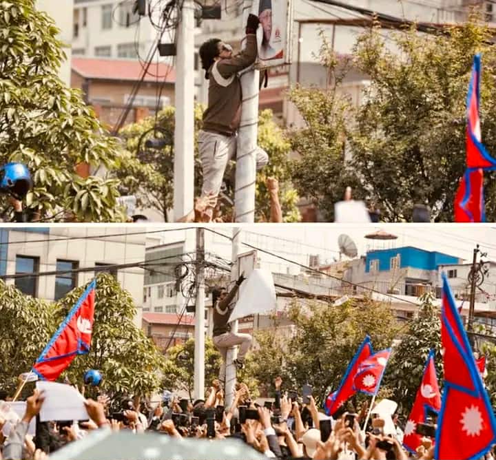 सरकारविरुद्ध प्रदर्शनमा उत्रिएका जेनजीले च्याते प्रधानमन्त्री ओलीको फोटो