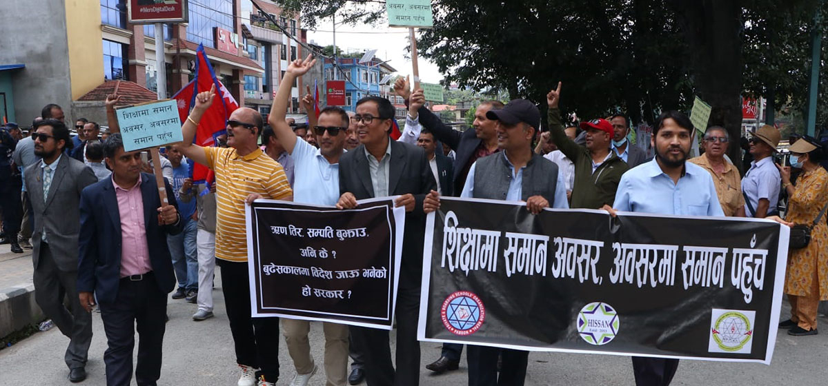 माइतीघरमा निजी विद्यालय सञ्चालकहरूको प्रदर्शन