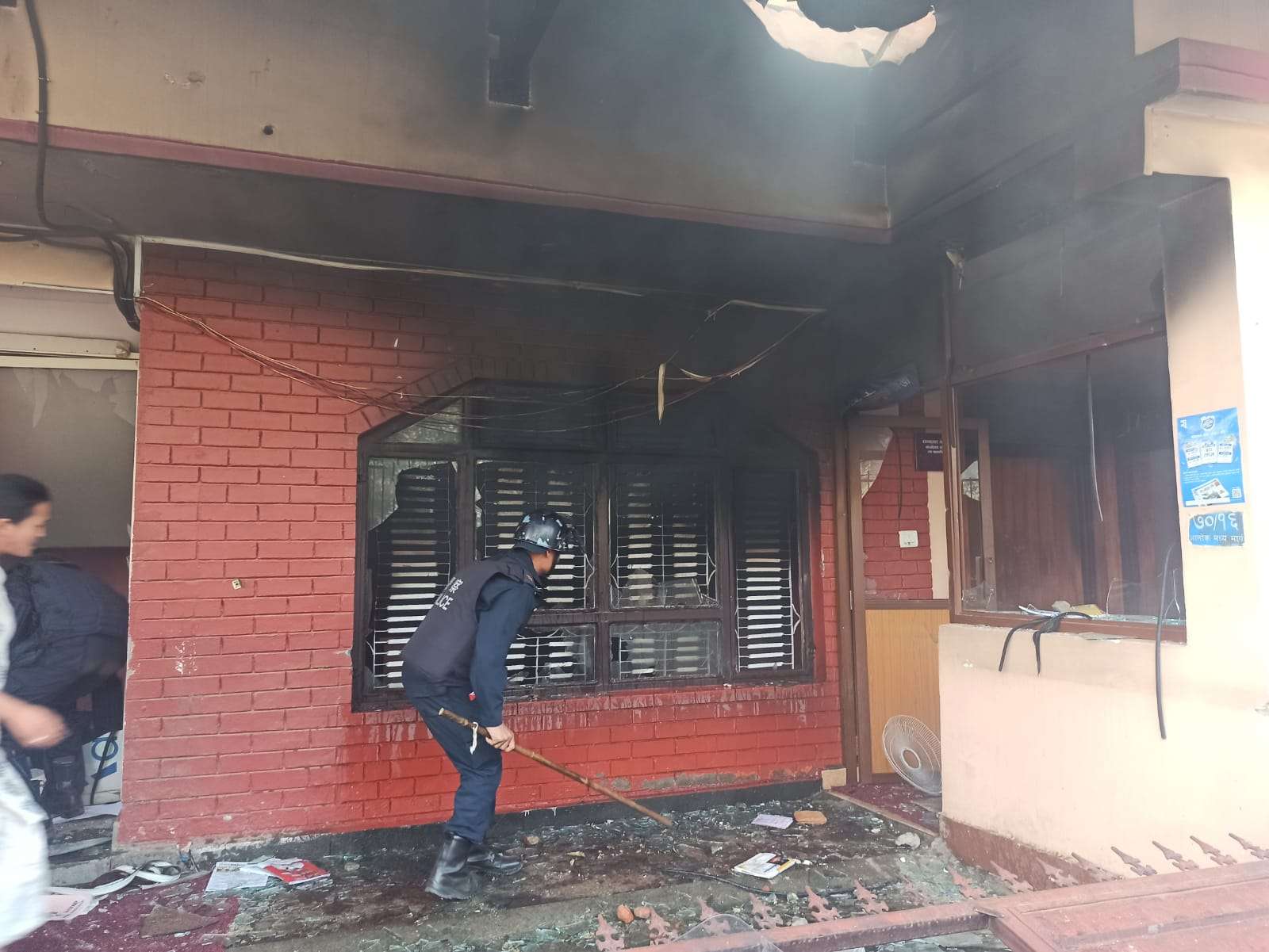 तोडफोडपछि राजावादीहरुले गरे नेकपा एसको केन्द्रीय कार्यालयमा आगजनी
