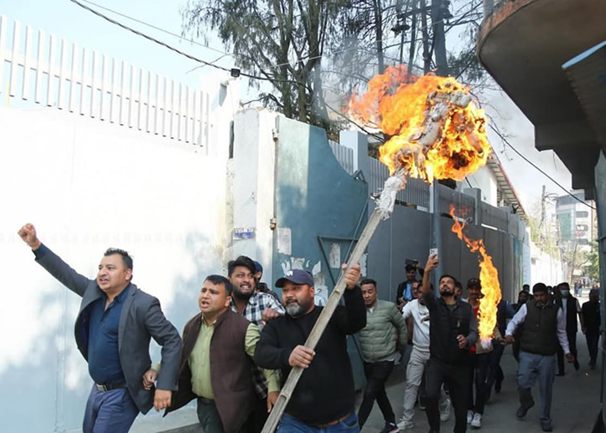कुलमानलाई हटाएको विरोधमा मन्त्रीको पुतलादहन