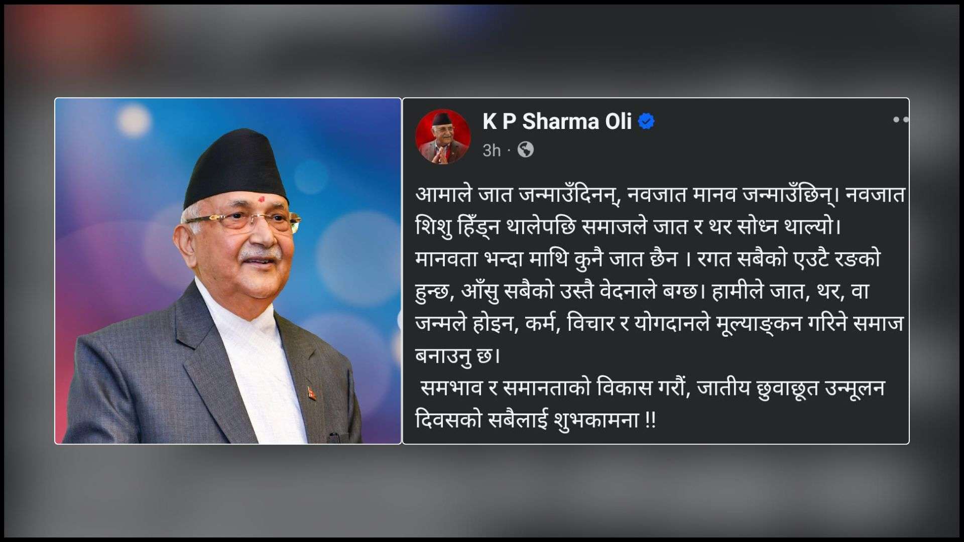 मानवता भन्दा माथि कुनै जात छैन : प्रधानमन्त्री ओली